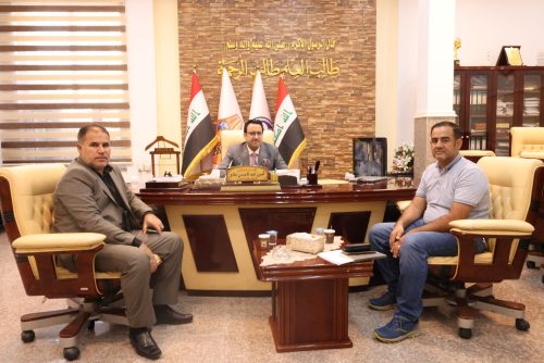 The Dean of the College of Medicine – University of Baghdad, Prof. Dr. Ameen Abdul Hassan Mani’ Al-Alwani, received a delegation from the Department of Construction and Projects at the Presidency of the University of Baghdad to discuss the project of rehabilitating the student club at the college and transforming it into a comprehensive cultural club.